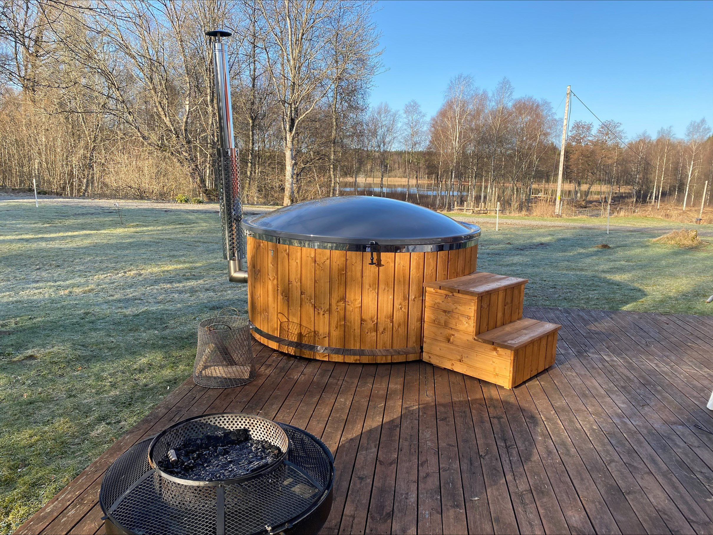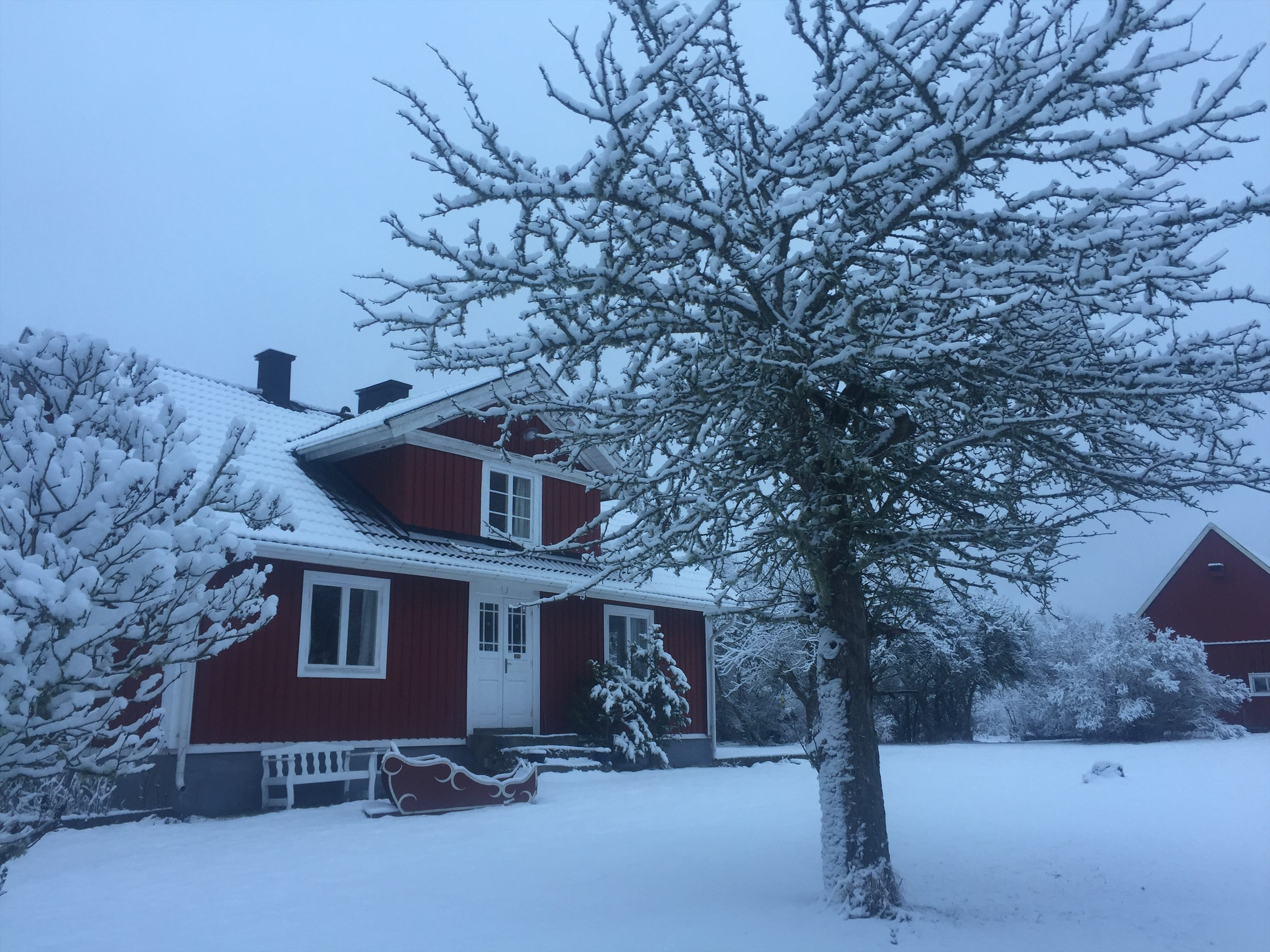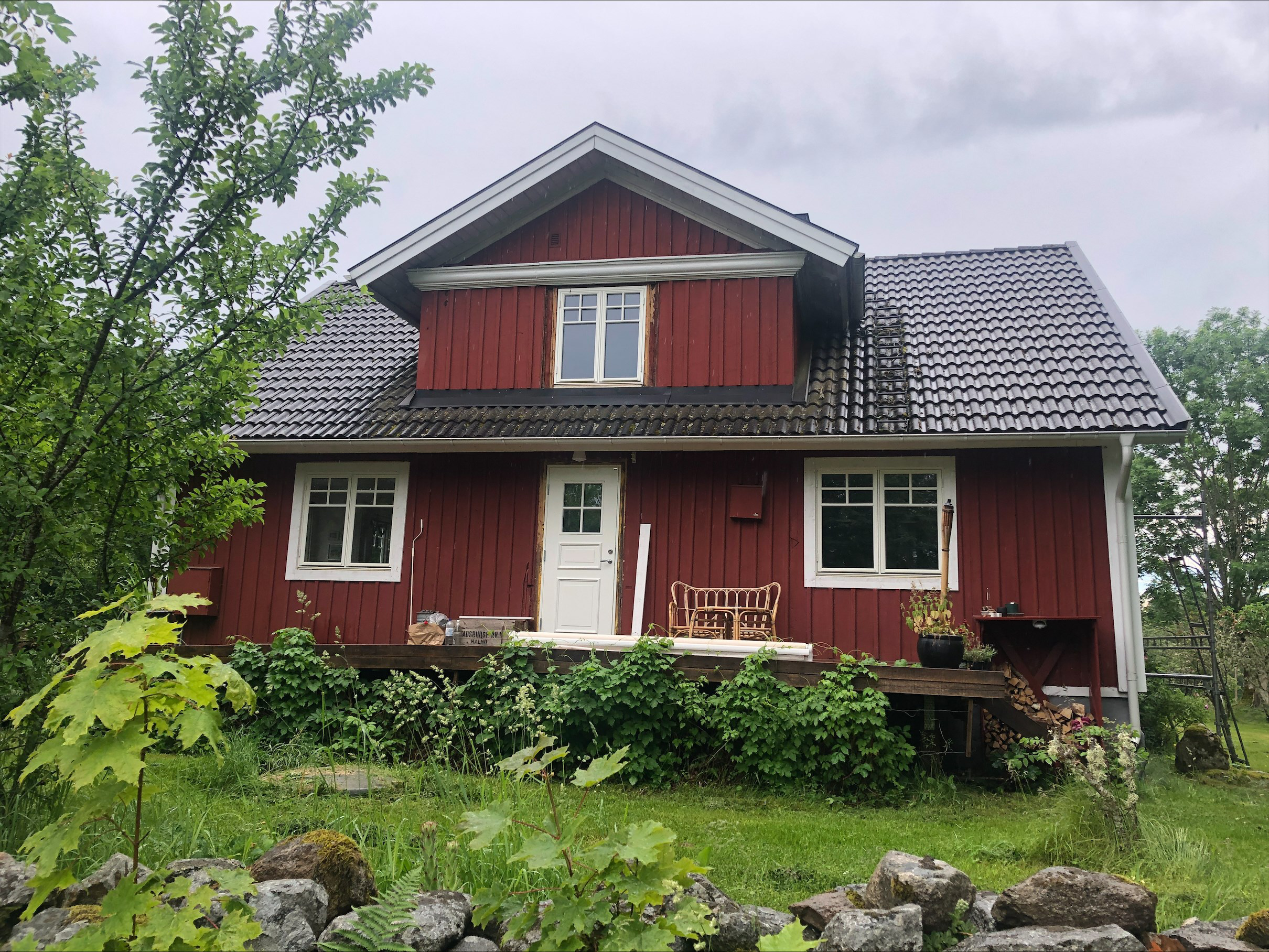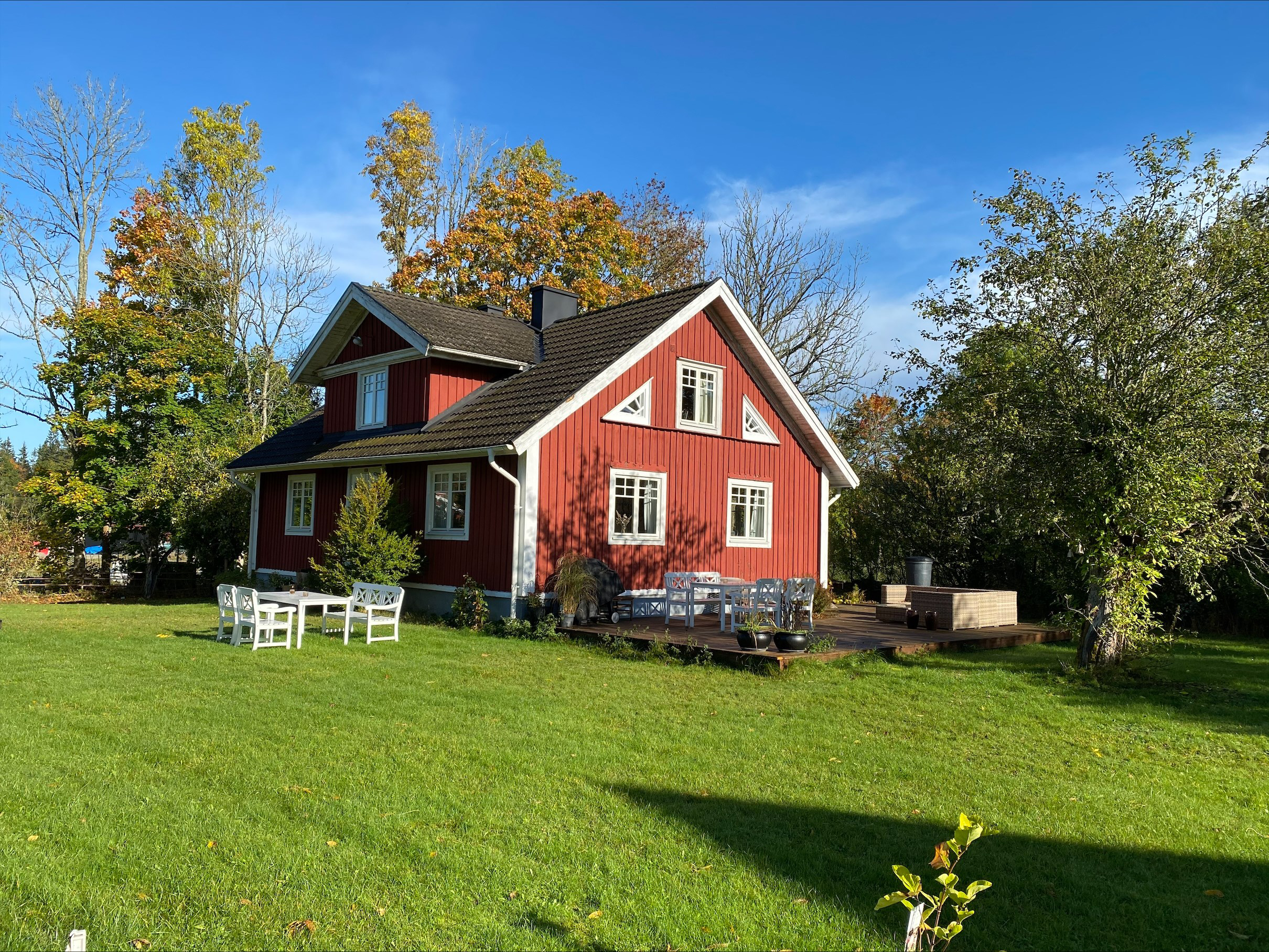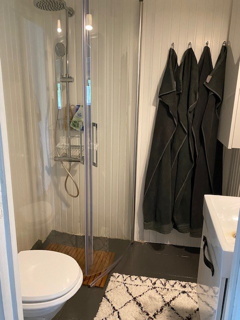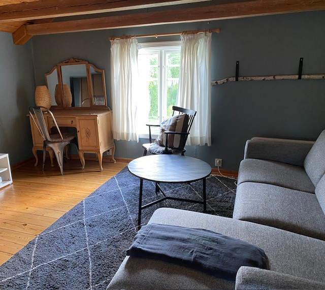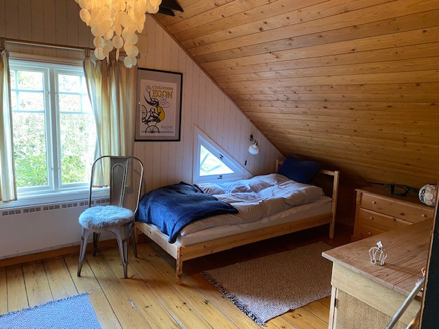 Hytten på Gummagölsvägen består af tre etager. På stueplan finder du en entré med en trappe til 1. sal, et køkken med spiseplads, samt to hyggelige stuer, den ene med en smuk porcelænskakkelovn. Her ligger også et soveværelse med dobbeltseng og badeværelse. På 1. sal er der en hyggelig repos med brændeovn, et opholdsrum og to soveværelser med dobbeltsenge, og i det ene værelse er der også en enkeltseng. I kælderen er der adgang til vaskemaskine og tørretumbler. Udenfor finder du en terrasse med vildmarksbad, hvor du kan nyde den smukke udsigt og de rolige omgivelser. På grunden står desuden en stor lade, som med tiden vil blive renoveret til et aktivitetshus.