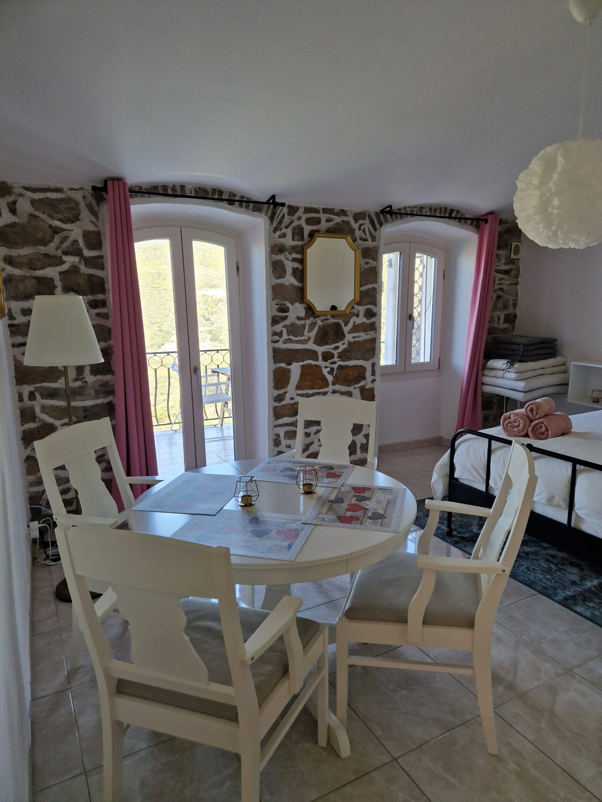 En rigtig fin uge i Seborga. Dejlig bolig med fantastisk udsigt, hvor morgenmaden blev nydt hver morgen på balkonen. Hyggelig lille – stille – by. Gode udflugtsmuligheder – bil anbefales meget. Har handlet i butik ved siden af (begrænset udvalg) og spist i byen ved Marcellino’s. Med hensyn til p-plads kørte vi rundt om byen til p-plads her. Masser af pladser hver dag.